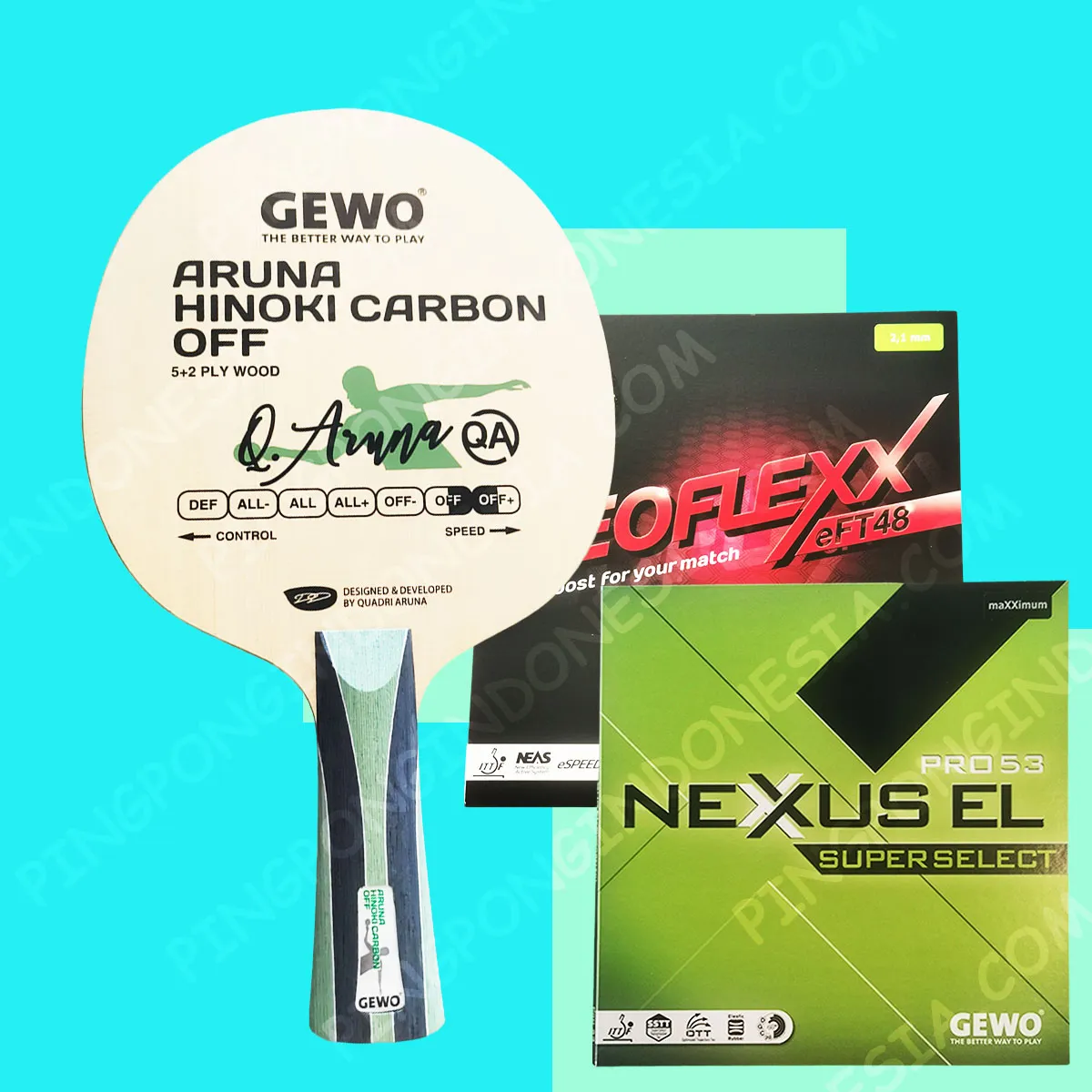 Blades Gewo Aruna Hinoki Carbon with rubber Gewo Nexxus Superselect 53 & GEWO Neoflexx eFT 48